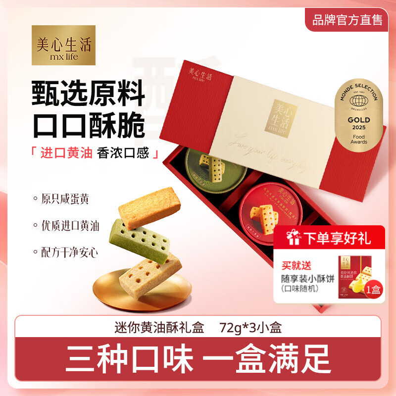 美心生活小饼干迷你黄油酥饼休闲零食办公室甜点解馋零食糕点礼盒团购送礼 迷你黄油酥3口味礼盒 216g