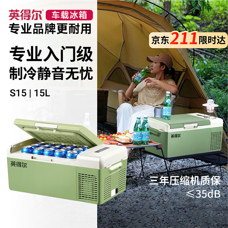英得尔车载冰箱压缩机15L低噪音(≤35分贝)纯车用-S15绿APP智能款12V24V