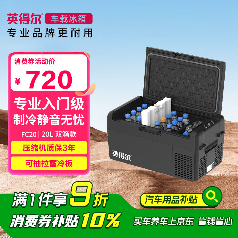 英得尔车载冰箱FC20灵动双箱压缩机纯车用冷藏冷冻冰箱12V24V220V
