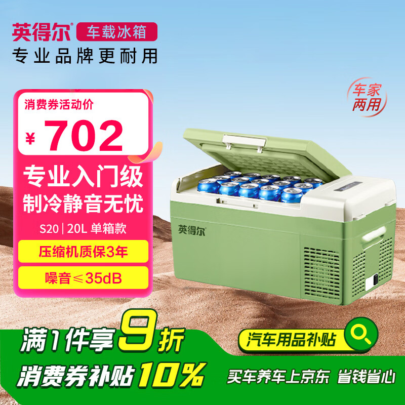 【自营】英得尔车载冰箱压缩机20L低噪音(≤35分贝)车家两用12V24v/220v S20绿