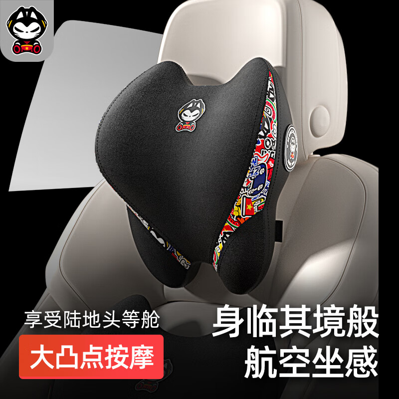 拽猫汽车腰靠头枕主驾驶开车记忆棉车用靠背腰垫护腰靠枕颈枕车载靠垫 头枕1个 【60D舒颈缓痛】潮纹款