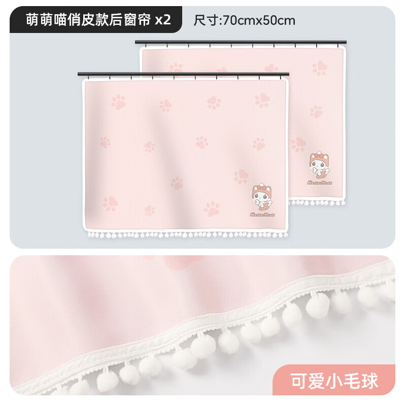 拽猫车窗遮阳帘轨道式汽车遮阳帘侧窗防晒隔热遮光防蚊网全车隐私帘 萌喵俏皮-后窗对装