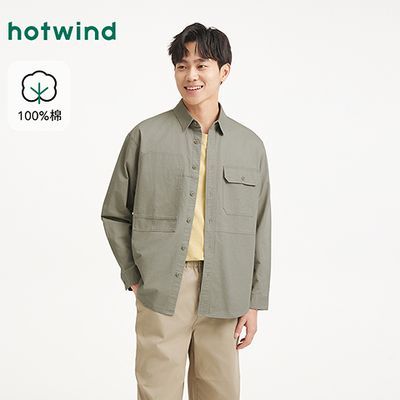 百亿补贴:热风男士长袖衬衫2025年秋季新款工装风宽松大口袋衬衣内搭上衣