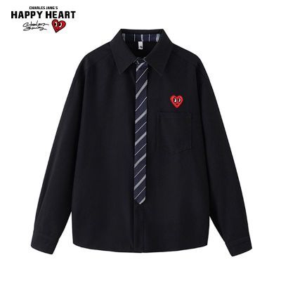 百亿补贴:查尔斯桃心学院风假领带拼接衬衫男女春秋季高级通勤休闲宽松外套