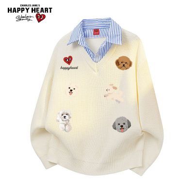 百亿补贴:查尔斯桃心衬衫领假两件毛衣男女秋冬2025新款慵懒学院针织衫外套