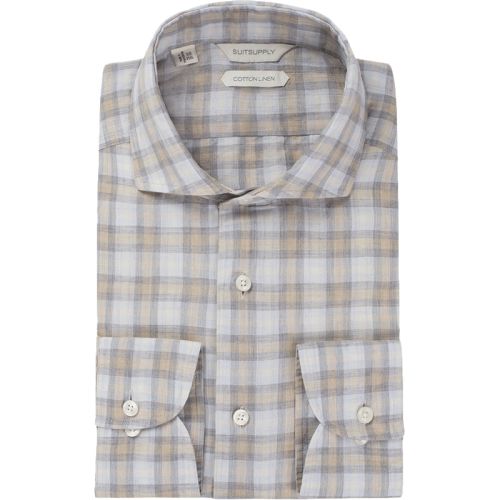 浅灰色-A 38 奥莱SUITSUPPLY-浅灰色棉格纹一字领男士衬衫