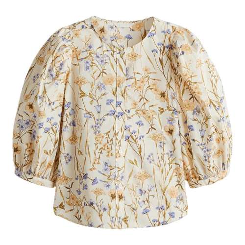 浅米色/花卉002 150/76 HM女装衬衫2025秋季新款宽松时尚简约印花长袖圆领上衣1269072