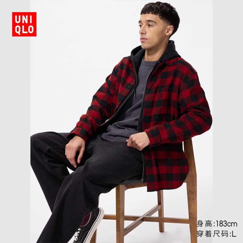 优衣库男女装法兰绒格子衬衫长袖衬衣薄外套25秋冬480772 470187 480772/15珊瑚红色 M