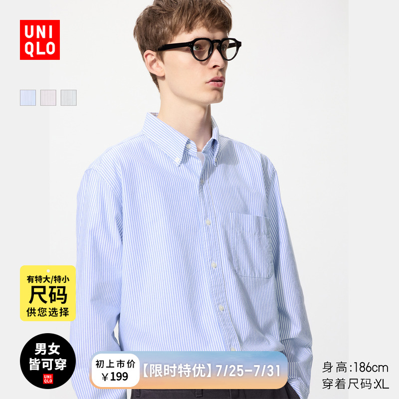 优衣库男女装牛津纺条纹衬衫长袖衬衣休闲25新款478087 475999