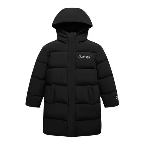 黑色 XXS Champion冠军男女童装25冬季防风轻便保暖反光印花长款鸭绒羽绒服