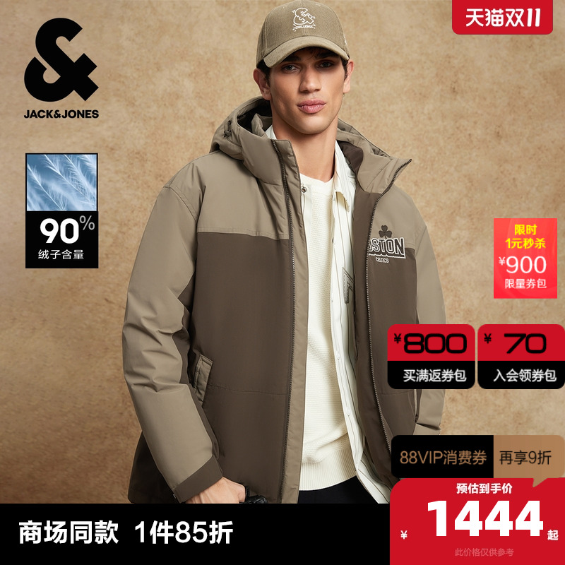 A42奶白 165/88A/XS 杰克琼斯奥特莱斯NBA联名2025年冬季新款男装羽绒服宽松尖领上衣