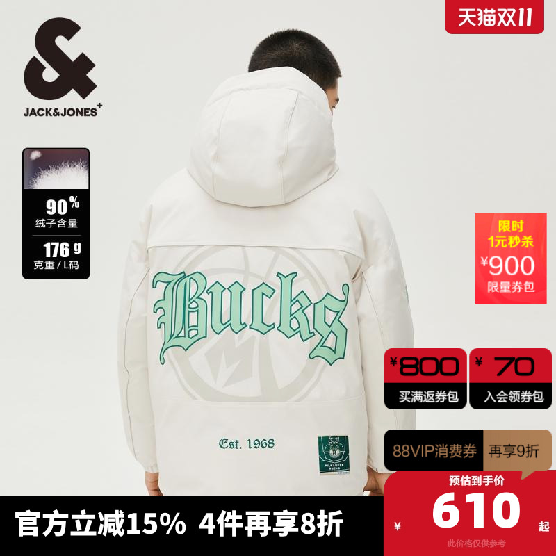 A00月光灰 170/92A/S 杰克琼斯冬季男士NBA联名雄鹿队舒适时尚运动羽绒服上衣男装