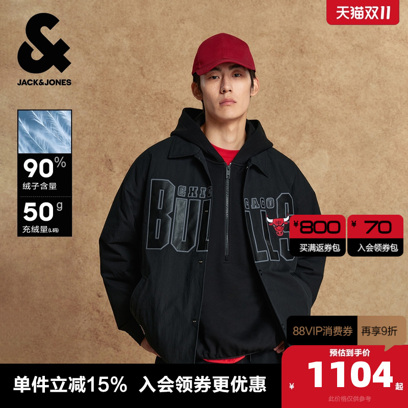 E40黑色 165/88A/XS 杰克琼斯奥特莱斯NBA联名公牛队2025年冬季款羽绒服男装百搭外套