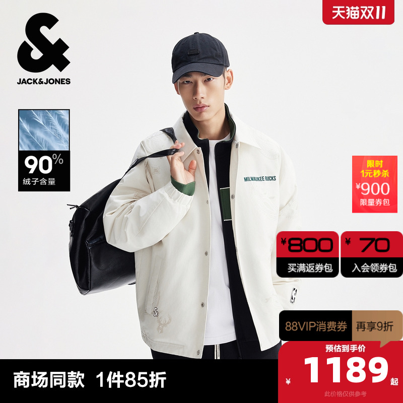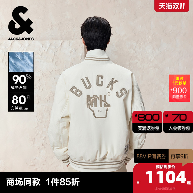 A43象牙白 170/92A/S 杰克琼斯男装冬季羽绒服2025年新款NBA联名棒球领字母刺绣外套