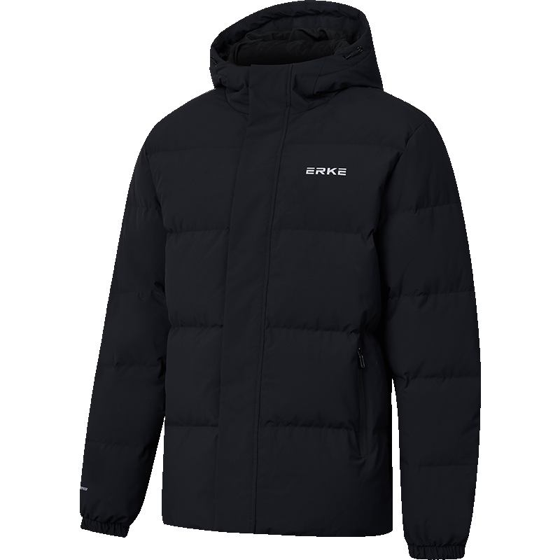 鸿星尔克四防|羽绒服男秋冬新款保暖防风防污防泼水户外休闲运动外套夹克 正黑 XL