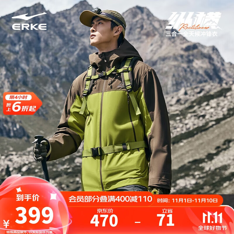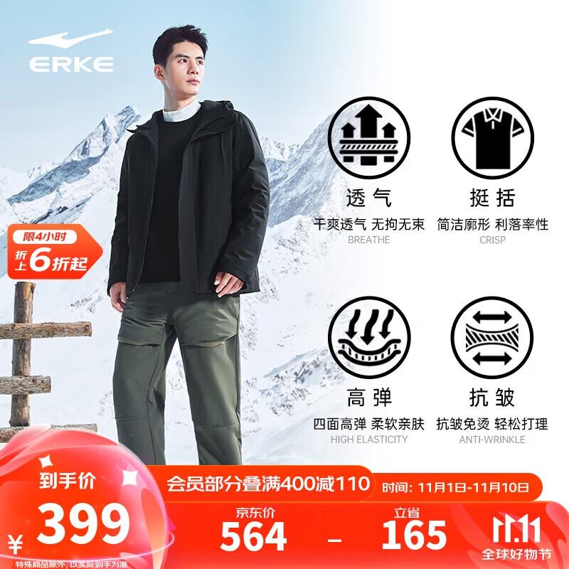 鸿星尔克纵横冲锋衣男士防水透湿三合一硬壳防暴雨登山服内里羽绒外套男