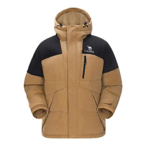 【3A抗菌 抗撕裂】淡栗棕/幻影黑,男女同款(女生拍小一码),A34CA6B792 XS 骆驼户外羽绒服冬季新款女款男款防刮耐磨连帽加厚保暖面包服