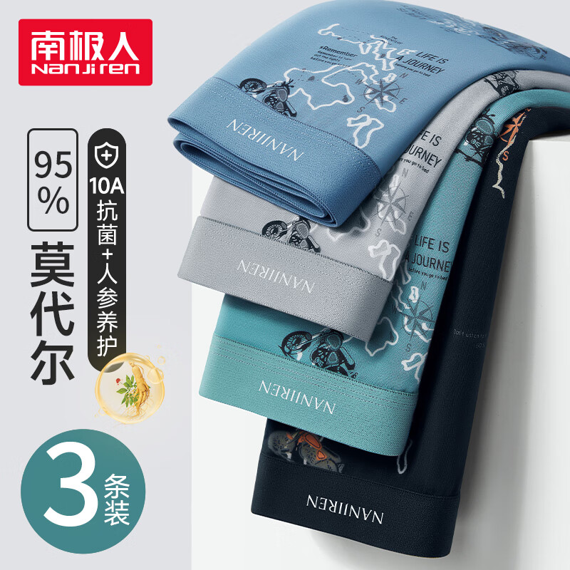 百亿补贴:南极人内裤男莫代尔男士内裤【10A抗菌】高端短裤宽松大码男生平角内裤