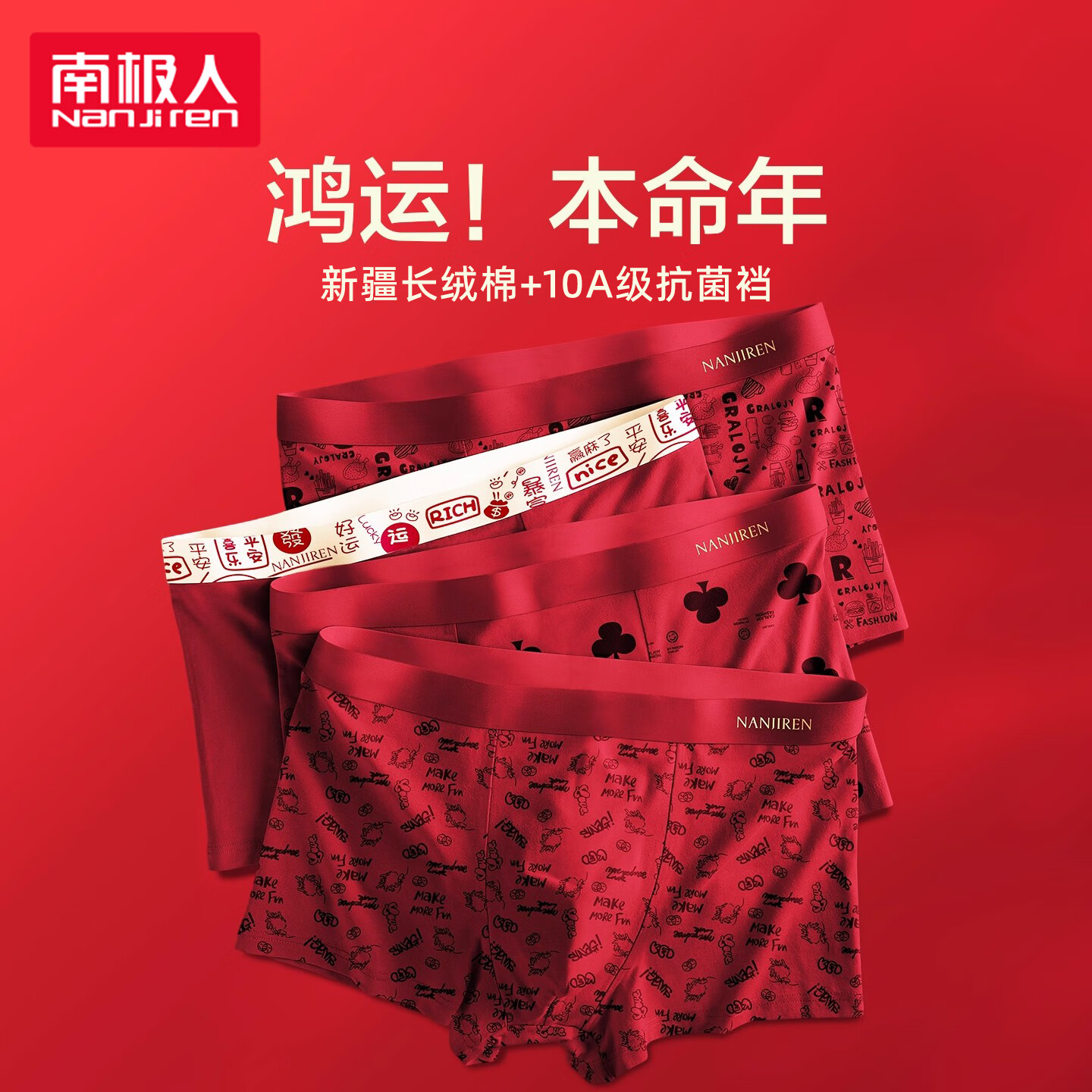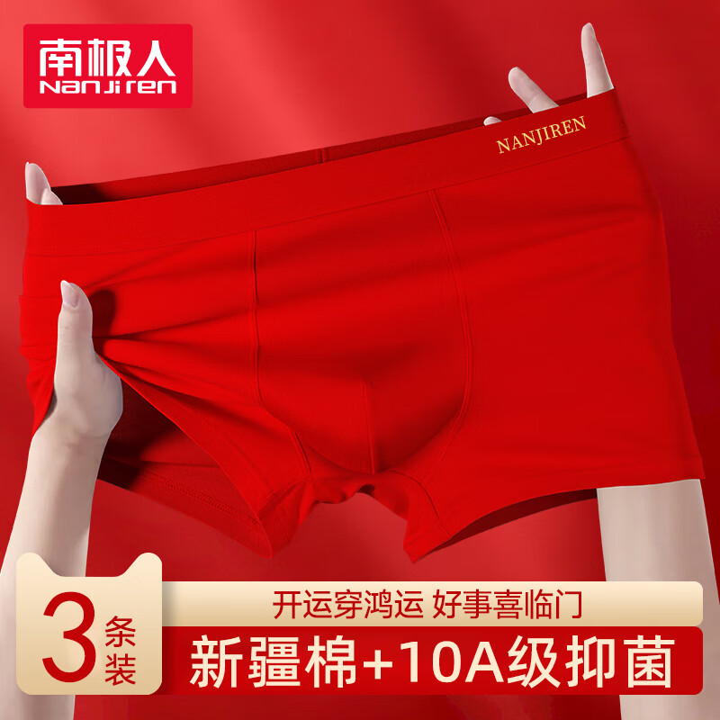 百亿补贴:南极人(Nanjiren)内裤男纯棉男士内裤【10A抗菌】本命年红色结婚礼物高端男短裤头