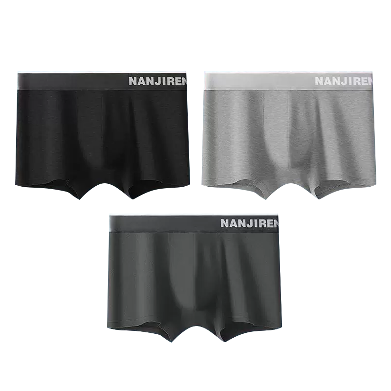 百亿补贴:南极人男士内裤男春夏冰丝10A抑菌人参养护平角裤透气大码宽松四角内裤 【黑色+深灰+浅灰】-轻奢系列 3条 3XL 【适合160-180斤】