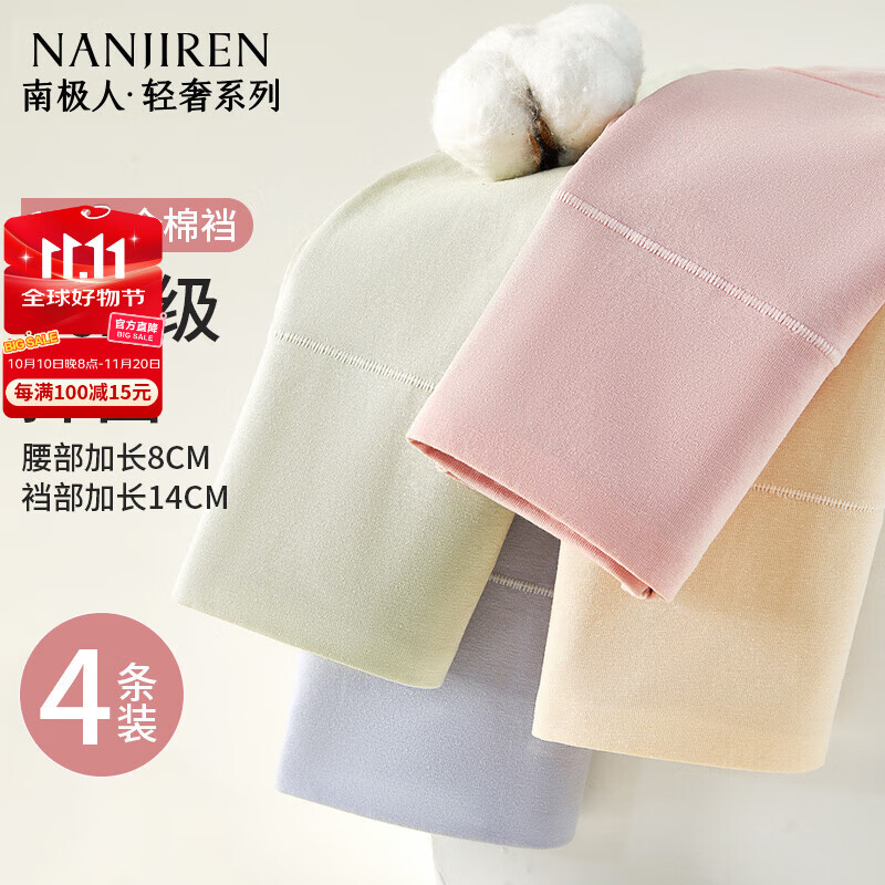 百亿补贴:南极人女士内裤女高腰纯棉裆内裤简约三角裤收腹舒适透气4条装