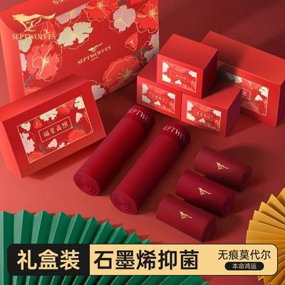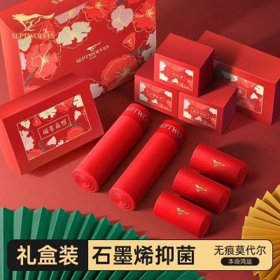 百亿补贴:七匹狼本命年男士礼物大红色内裤袜子送礼盒结婚莫代尔马年短裤男