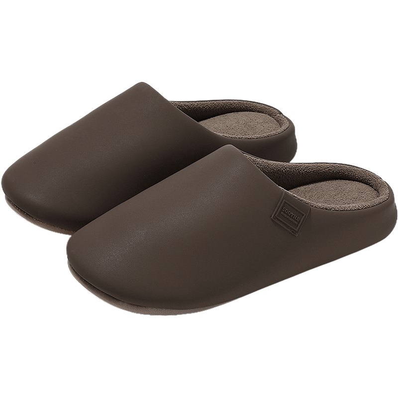 红豆 高级感棉拖鞋男秋冬2025新款室内家居保暖软底PU皮防水毛拖鞋