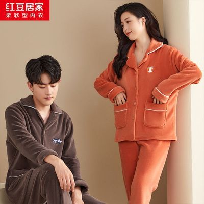 百亿补贴:红豆居家情侣睡衣女秋冬加厚法兰绒柔软睡衣男女家居服套装可外穿