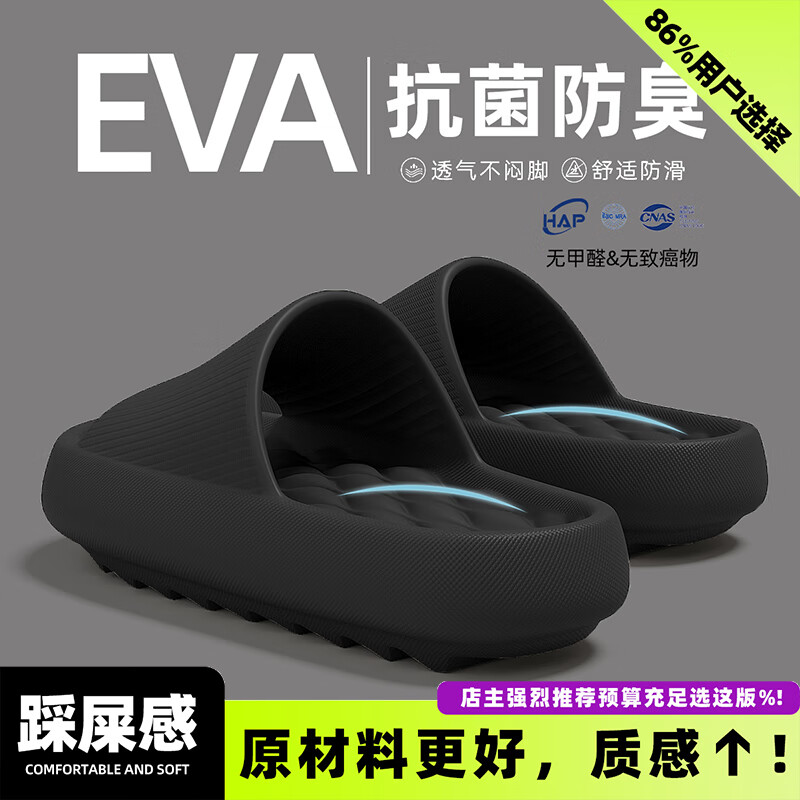百亿补贴:红豆踩屎感拖鞋男士2025新款夏季室内家居浴室防滑厚底防臭凉拖男外穿 黑色 3.0抗菌防臭eva 42-43 (255mm) 适合41-42脚