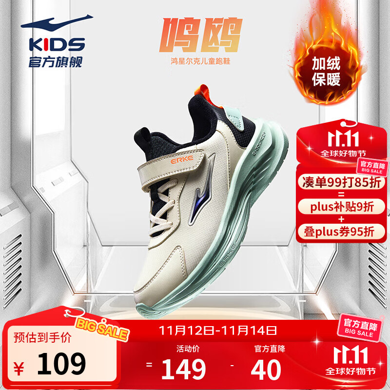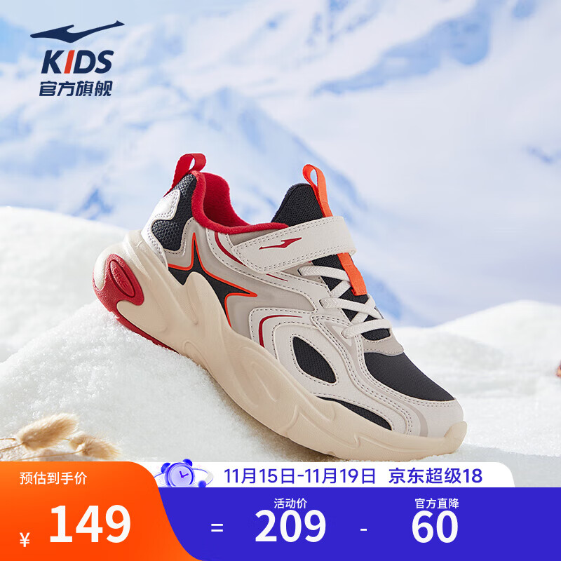 鸿星尔克儿童棉鞋男女童加棉跑鞋冬季革面加绒保暖运动中大童丨星耀2 未漂原色/山药灰 26