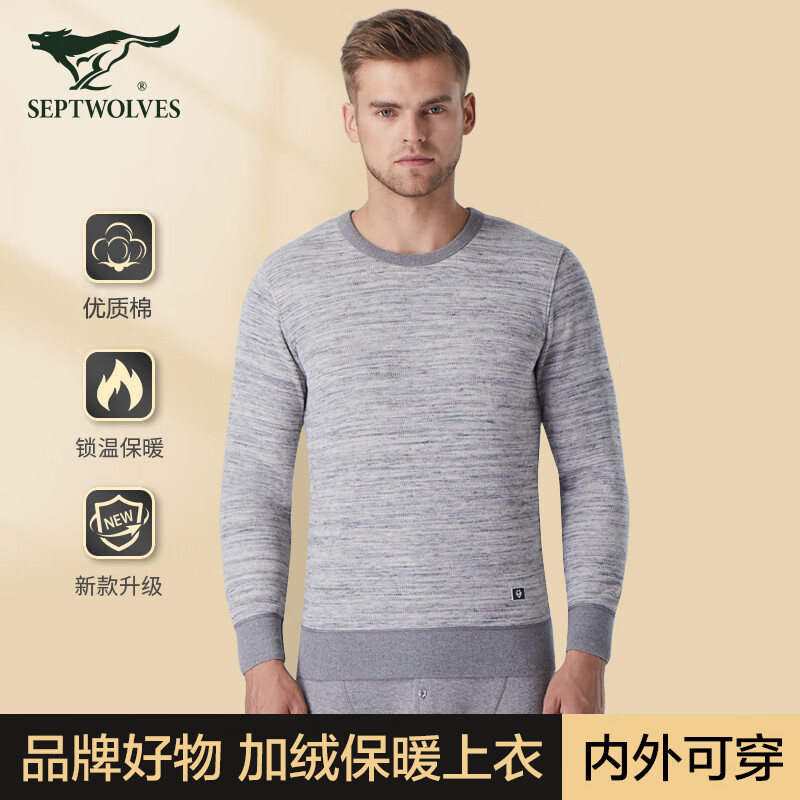 七匹狼保暖内衣男加绒加厚保暖上衣外穿针织衫男生冬季保暖套头衫 时尚款浅灰 XL (175) (建议130-150斤)