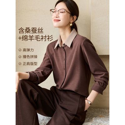 百亿补贴:MOHO&MO沫晗依美 2025冬季新款简约松弛百搭正肩撞色拼接保暖衬衫