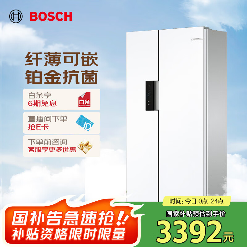 博世(BOSCH)【云朵白】502升超薄可嵌入式变频大容量风冷无霜 国家补贴15%冰箱 对开门家用冰箱 K1EA50209C