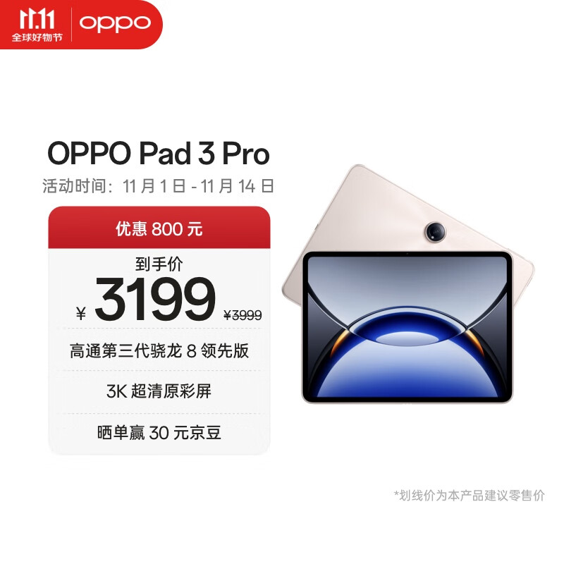 OPPO Pad 3 Pro 12.1英寸 平板电脑 高通第三代骁龙8领先版芯片 晨曦金 16GB+512GB