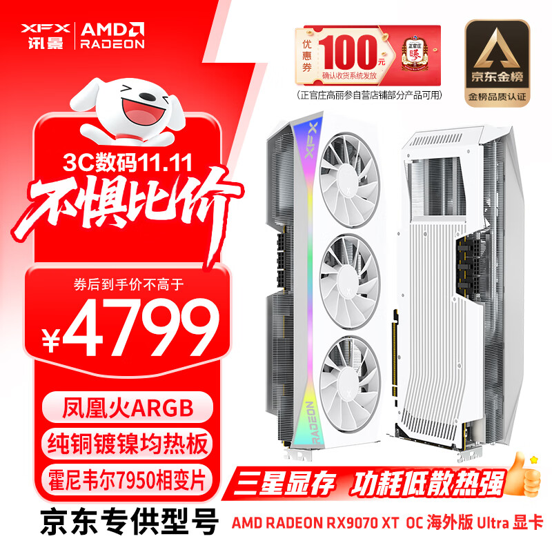 讯景(XFX)AMD RADEON RX 9070 XT OC 海外版Ultra 16GB 白色 全新电竞游戏设计智能学习台式电脑独立显卡