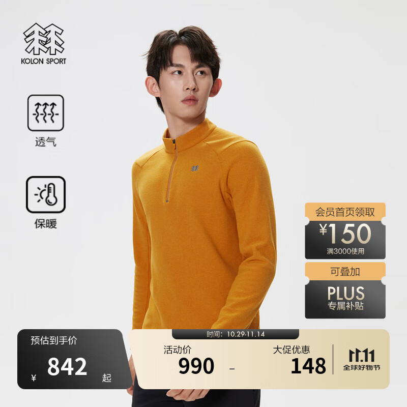 KOLON SPORT/可隆半拉链长袖 男子登山保暖透气内搭户外休闲T恤- LHZT4WN125-AR 琥珀黄 XL 180/100A