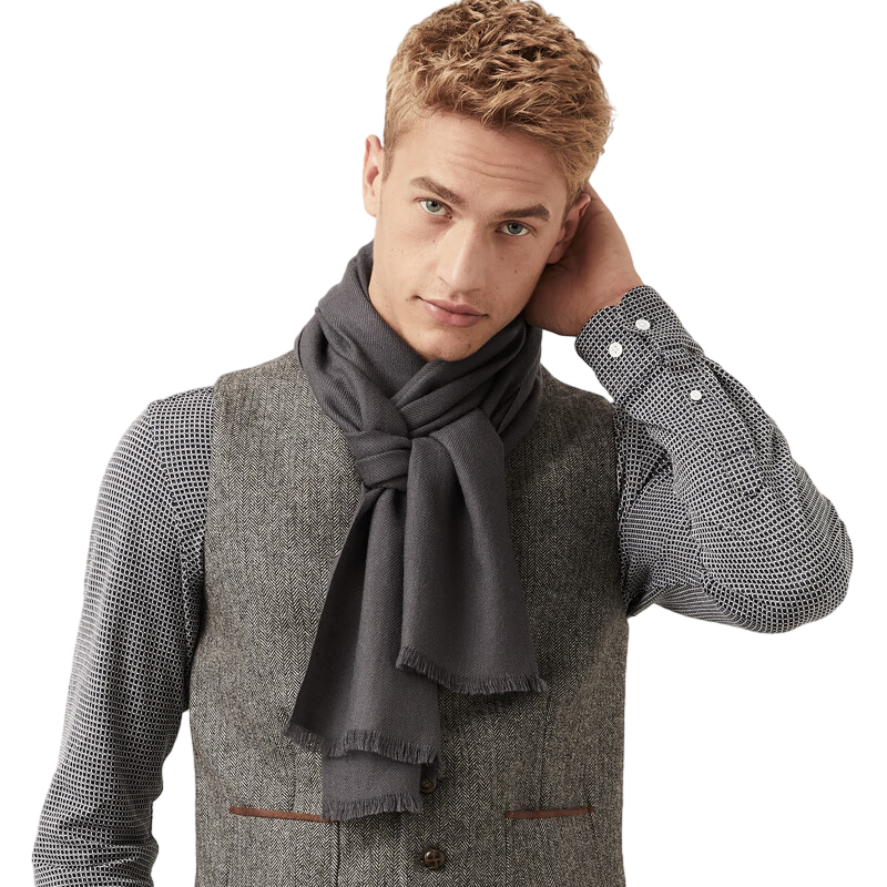 恒源祥羊绒围巾男士商务秋冬保暖加厚纯色围脖披肩两用生日礼物礼盒深灰