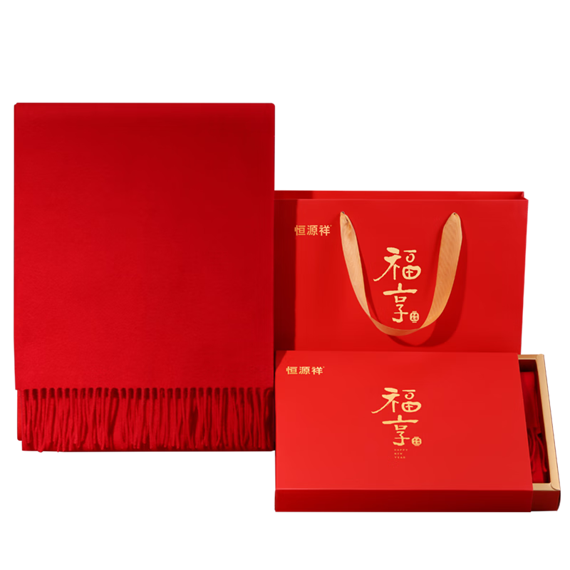 恒源祥围巾女秋冬季羊毛女士围脖披肩妈妈老人生日礼物妇女节礼盒中国红