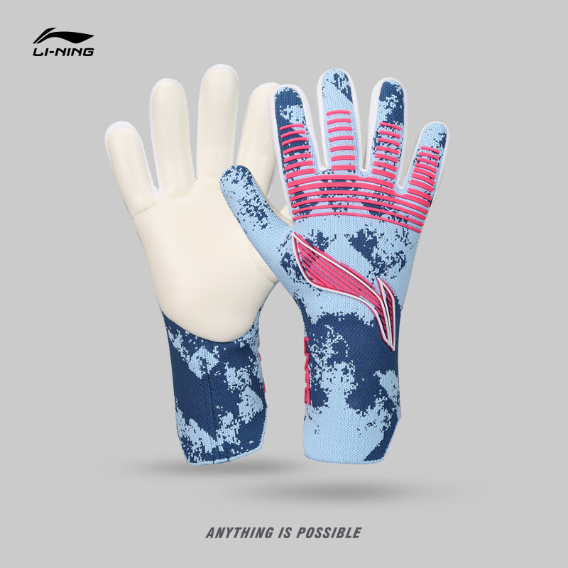 李宁(LI-NING)守门员手套足球比赛专业加强款门将手套成人耐磨防滑足球手套 迷彩蓝 M :掌宽8-8.5cm