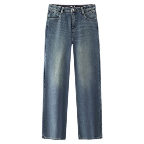 牛仔黄泥染80325 24 森马保暖加绒弹力喇叭牛仔裤女