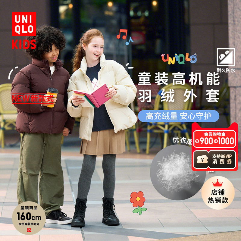 优衣库童装男童女童蓬松羽绒茄克外套夹克羽绒服25秋冬新款478148 38 深褐色 120cm