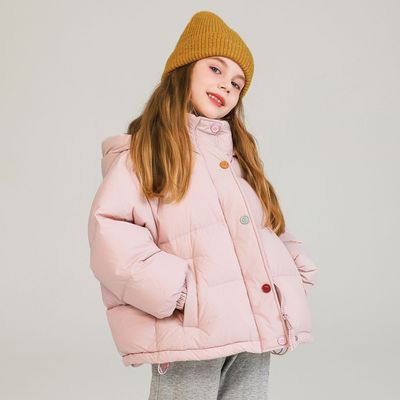 百亿补贴:秋冬季新款女童中大童韩版2025时尚连帽彩色纽扣保暖羽绒棉服