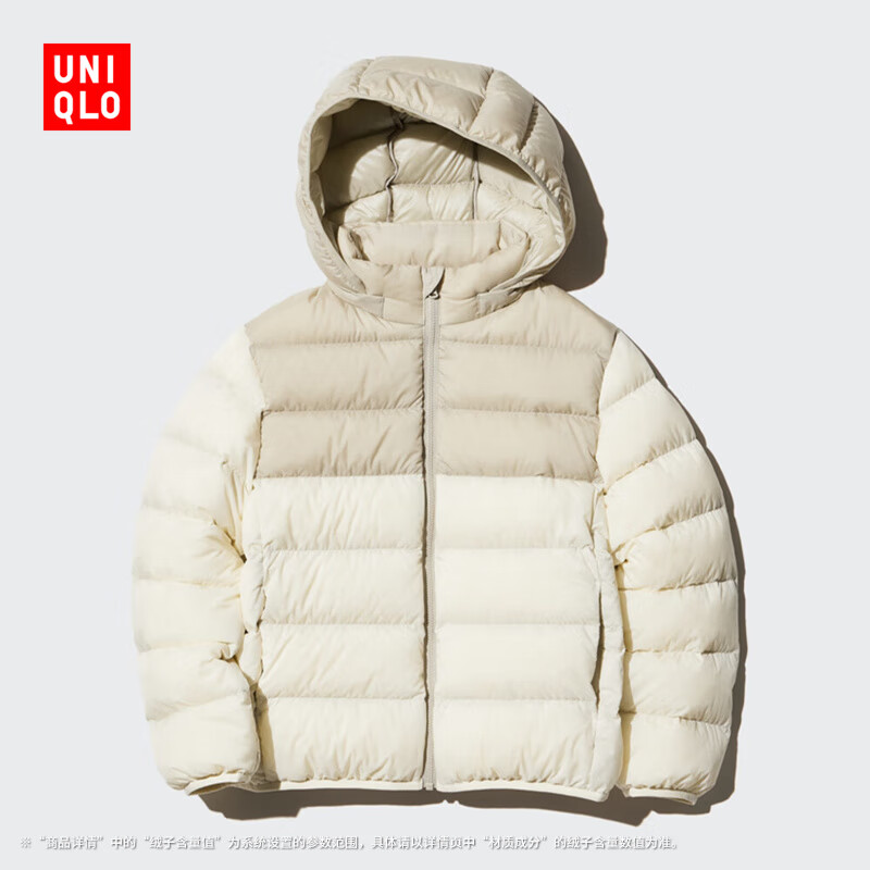 优衣库童装男女童高级轻型羽绒连帽外套帽子可拆卸羽绒服471378 01 乳白色 110