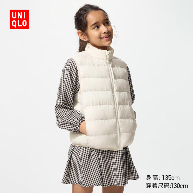 优衣库童装男女童PUFFTECH空气棉服可机洗背心马甲排骨棉服478124 01 乳白色 160