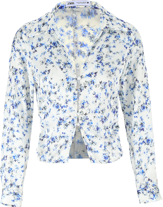 ZARA 【轻奢时尚】女式丝滑印花收腰显瘦气质短款翻领长袖衬衫