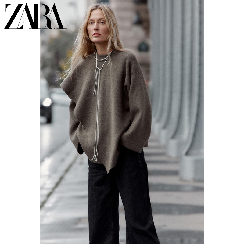 ZARA 女式时尚圆领宽松纯色轻透毛衣