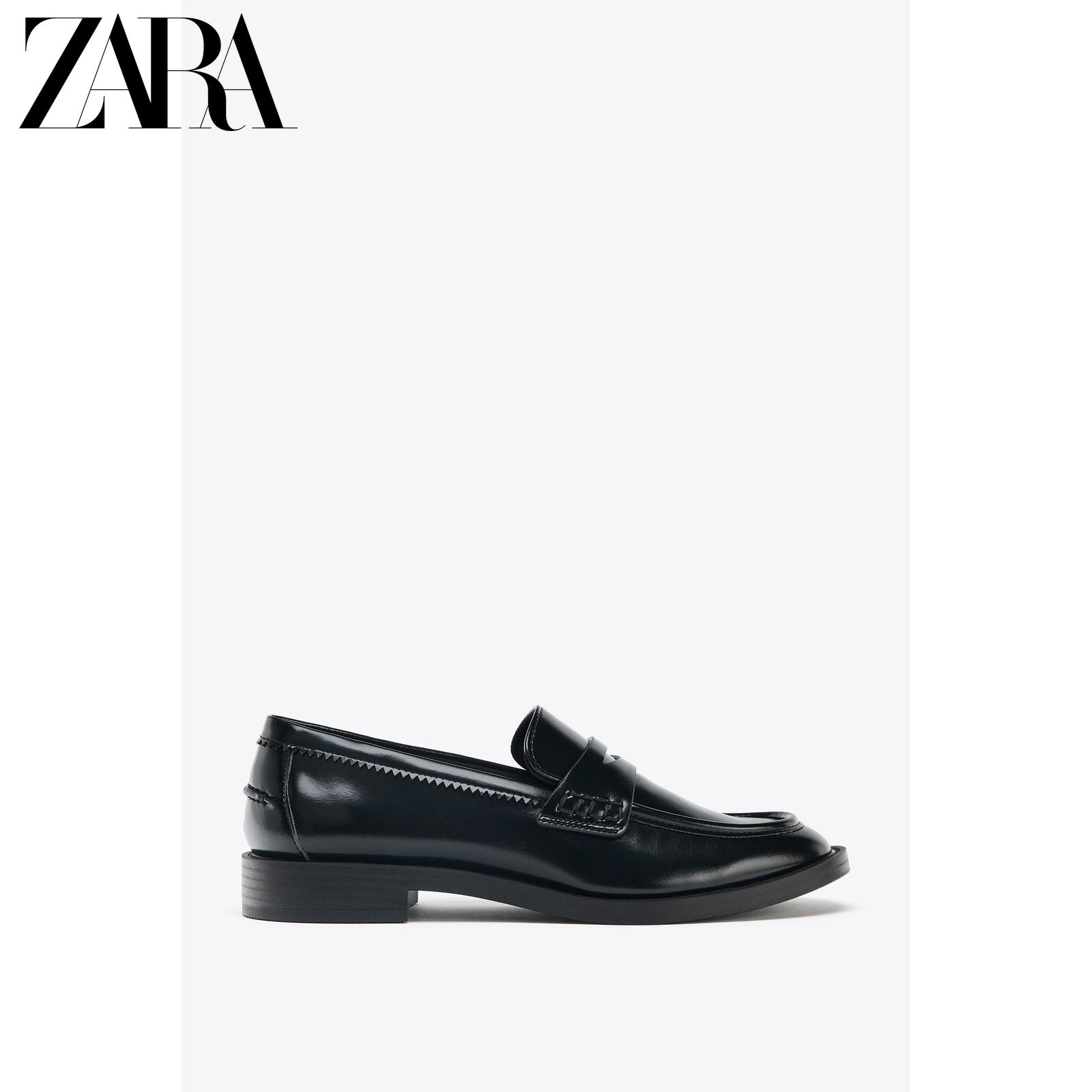 ZARA2025秋季新品 女鞋 黑色时尚平底船鞋圆头乐福鞋 3521610 800