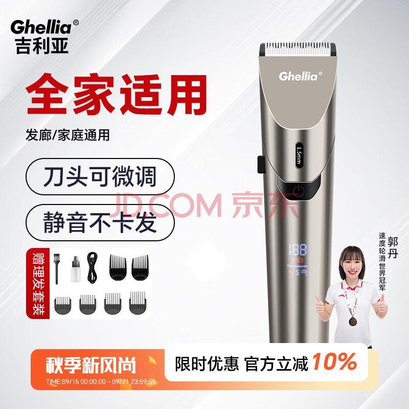 GHELLIA 吉利亚推子理发精剪师理发器电动成人儿童婴幼儿剃头电推子全身水洗家用剃头剪刀理发推剪 深金槟色 镜面款 (无底座)