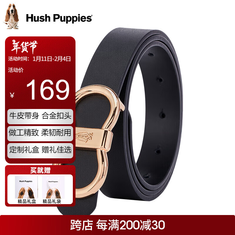 暇步士(Hush Puppies)皮带女简约优雅腰带女经典针扣女士皮带配饰腰带生日礼物送女友