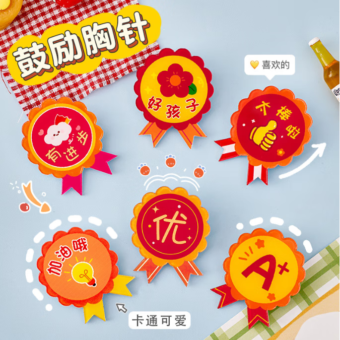 牧余亚克力花边奖励胸针儿童小红花创意diy装饰配饰徽章奖励小礼品 好孩子款胸针【10个装】